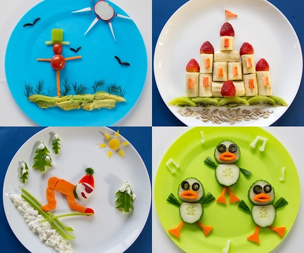 Trẻ em sẽ thích thú khi ăn những đĩa hoa quả được trang trí hình thù đơn giản, ngộ nghĩnh